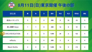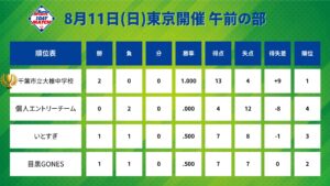 8月11日(日)東京開催試合結果