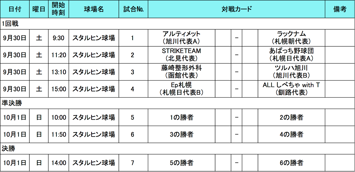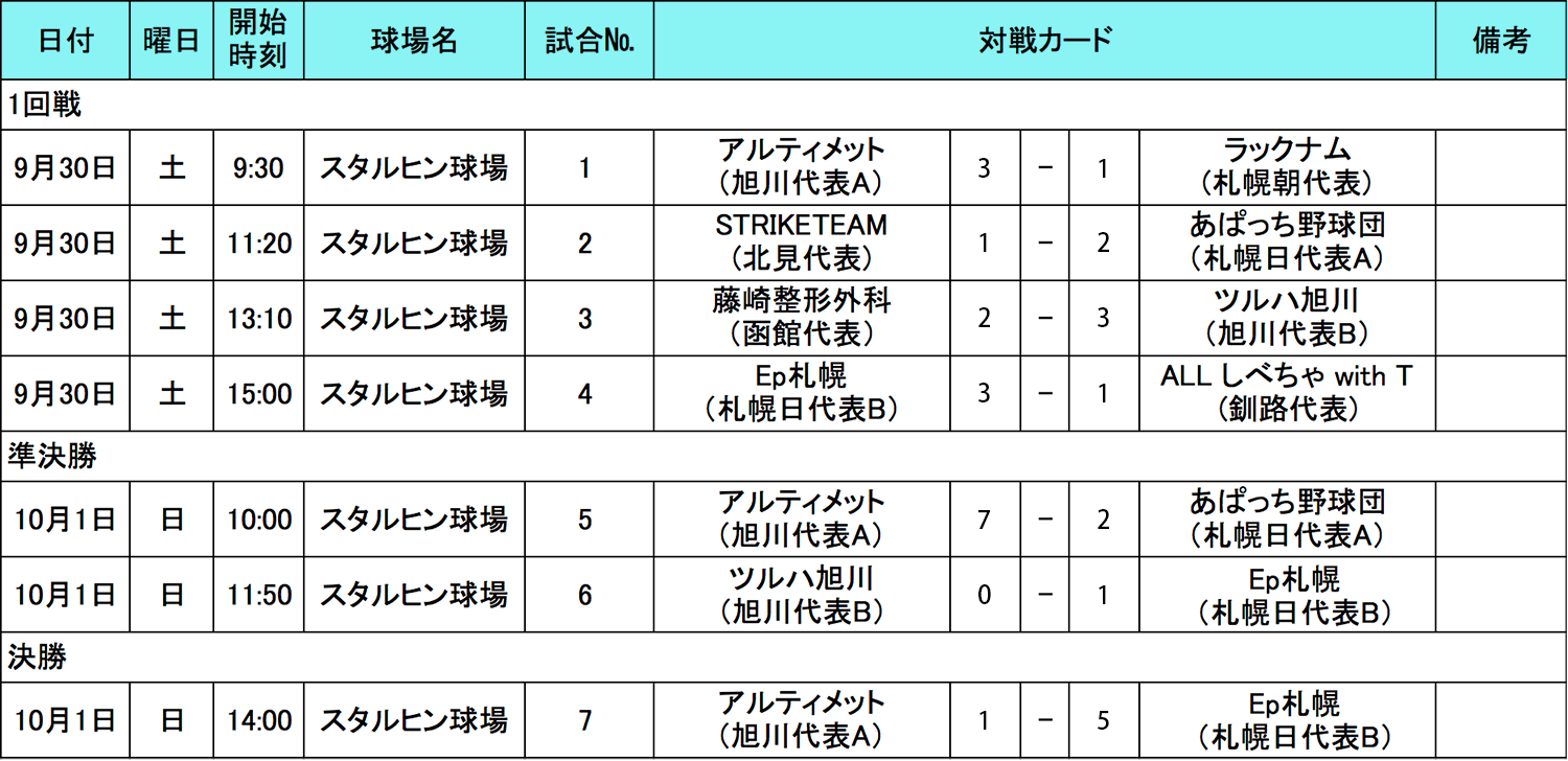 9月30日(土)〜10月1日(日)に全地区に先駆けて北海道代表決定戦が行われました。トーナメント戦の結果、全国決勝大会開催地の沖縄へのJTB旅行券100万円とTexas RangersのMLBマジェスティックユニフォームを一番乗りで手にしたのは札幌日代表B「Ep札幌」となりました、おめでとうございます!