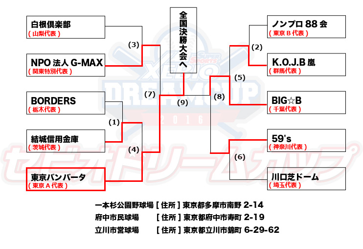 地区代表決定戦 2016年10月29日(土) 一本杉公園野球場(多摩市)・2016年10月30日(日) 一本杉公園野球場(多摩市)