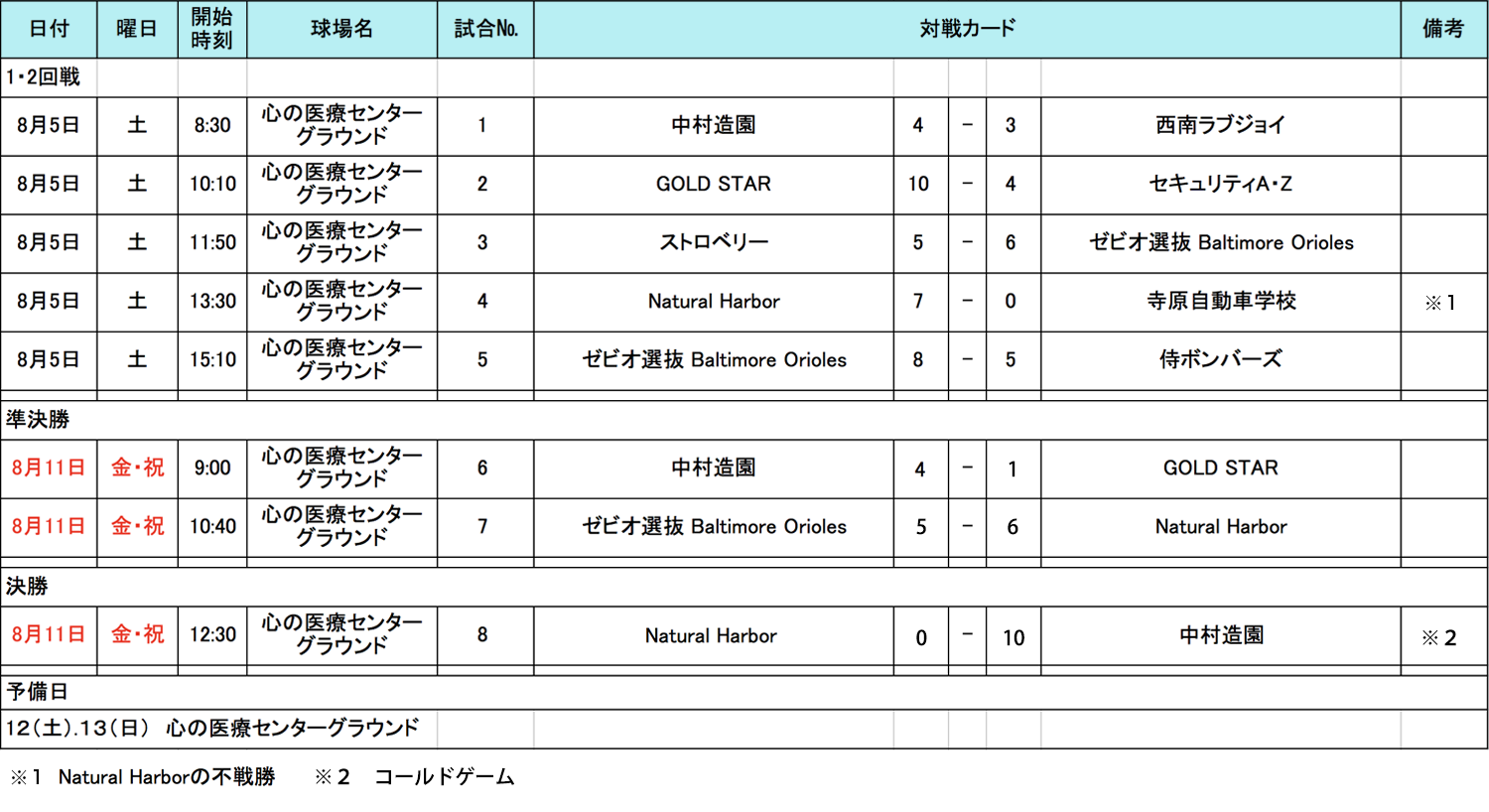 8月11日(金・祝)心の医療センターグラウンドにて準決勝〜決勝が行われましたので、結果をお知らせいたします。