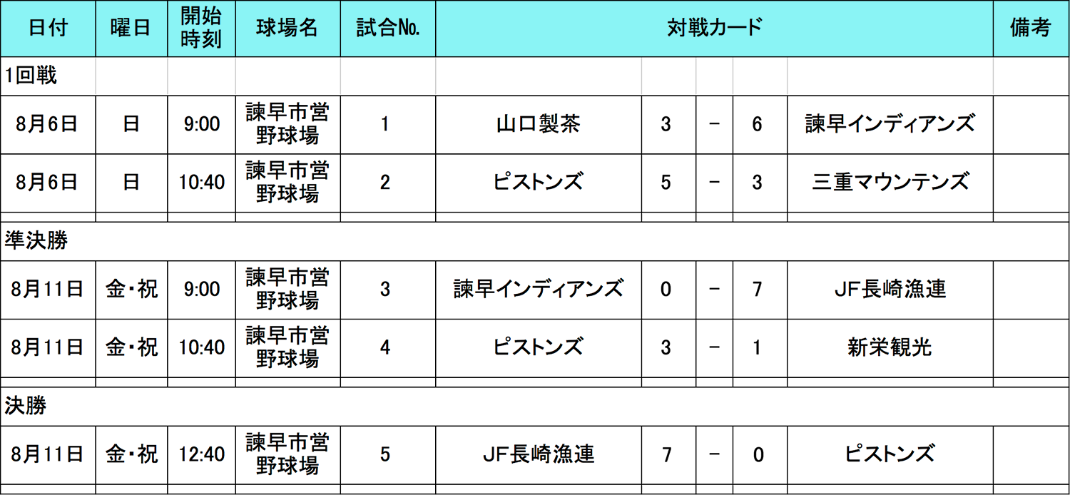 長崎の参加者の皆様、大変お待たせ致しました。8月6日(日)と8月11日(日)に1回戦〜決勝までが行われました。