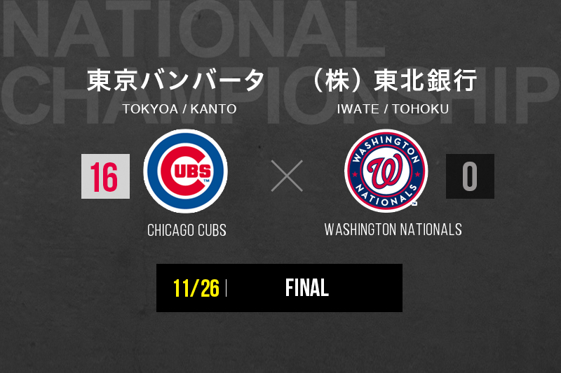 【MLBドリームカップ supported by XEBIO Group 決勝 関東地区代表「東京バンバータ」 VS 東北地区代表「(株)東北銀行」】