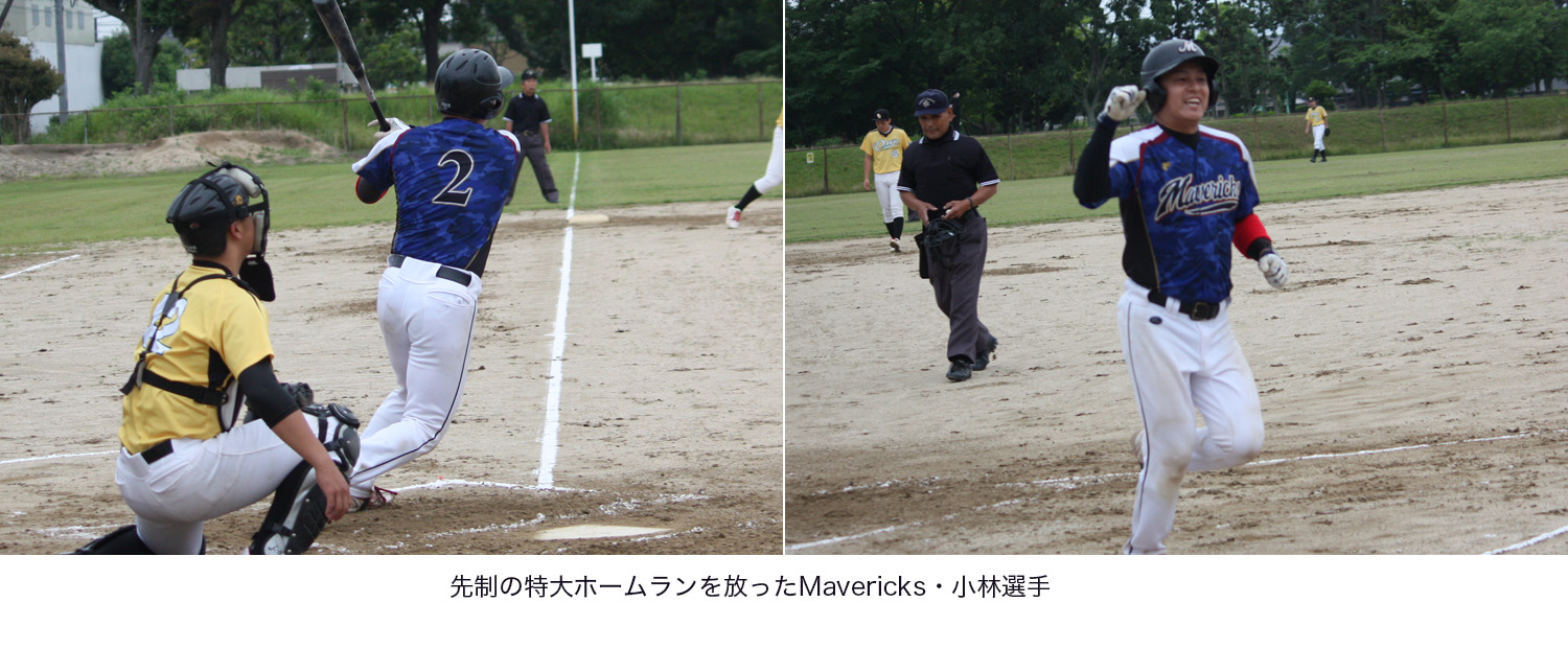 初戦突破に向けて意気上がるMavericksは2回裏、4番・小林選手の特大ホームランで