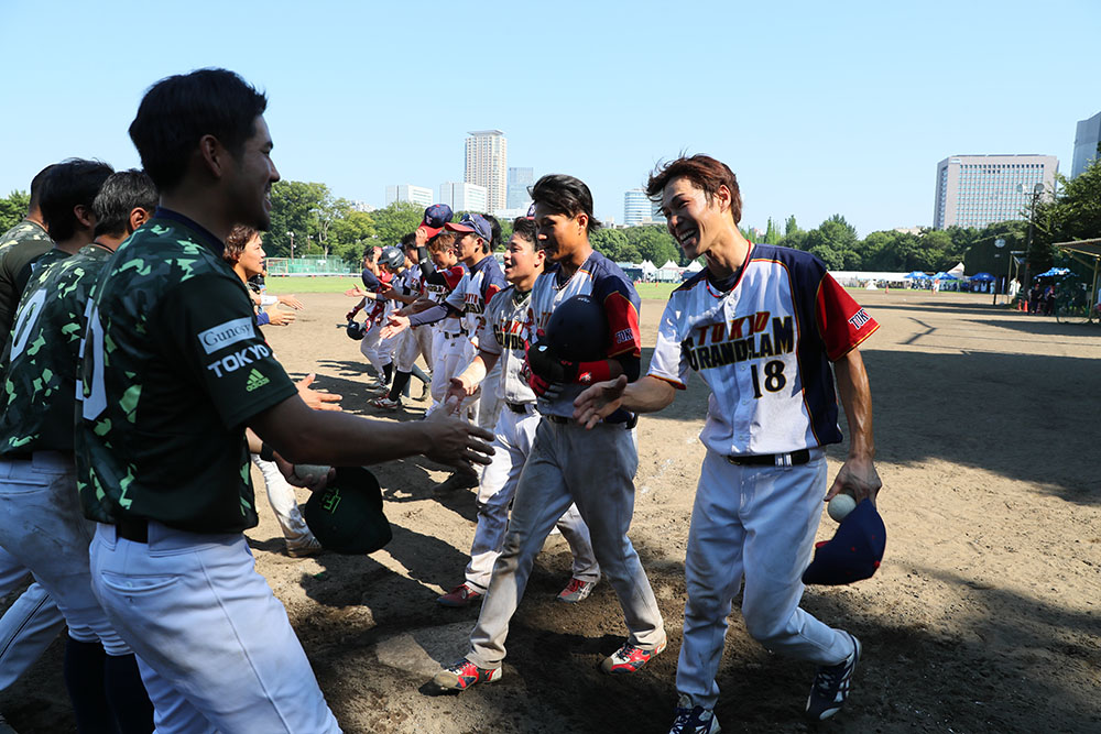 タイブレークは大会規定により、1アウト満塁でプレー開始。先攻の天晴は、2アウト満塁から2番・高野が左中間へのツーベースを放ち、ランナー2人が生還。さらに4番・岡添のレフト前ヒットなどで追加点を挙げ、6対1として攻撃を終える。後攻のTOKYO GRAND SLAMは内野ゴロの間に1点を返すも、反撃もここまで。タイブレーク戦となった熱戦を天晴が制し、3回戦へと駒を進めた。