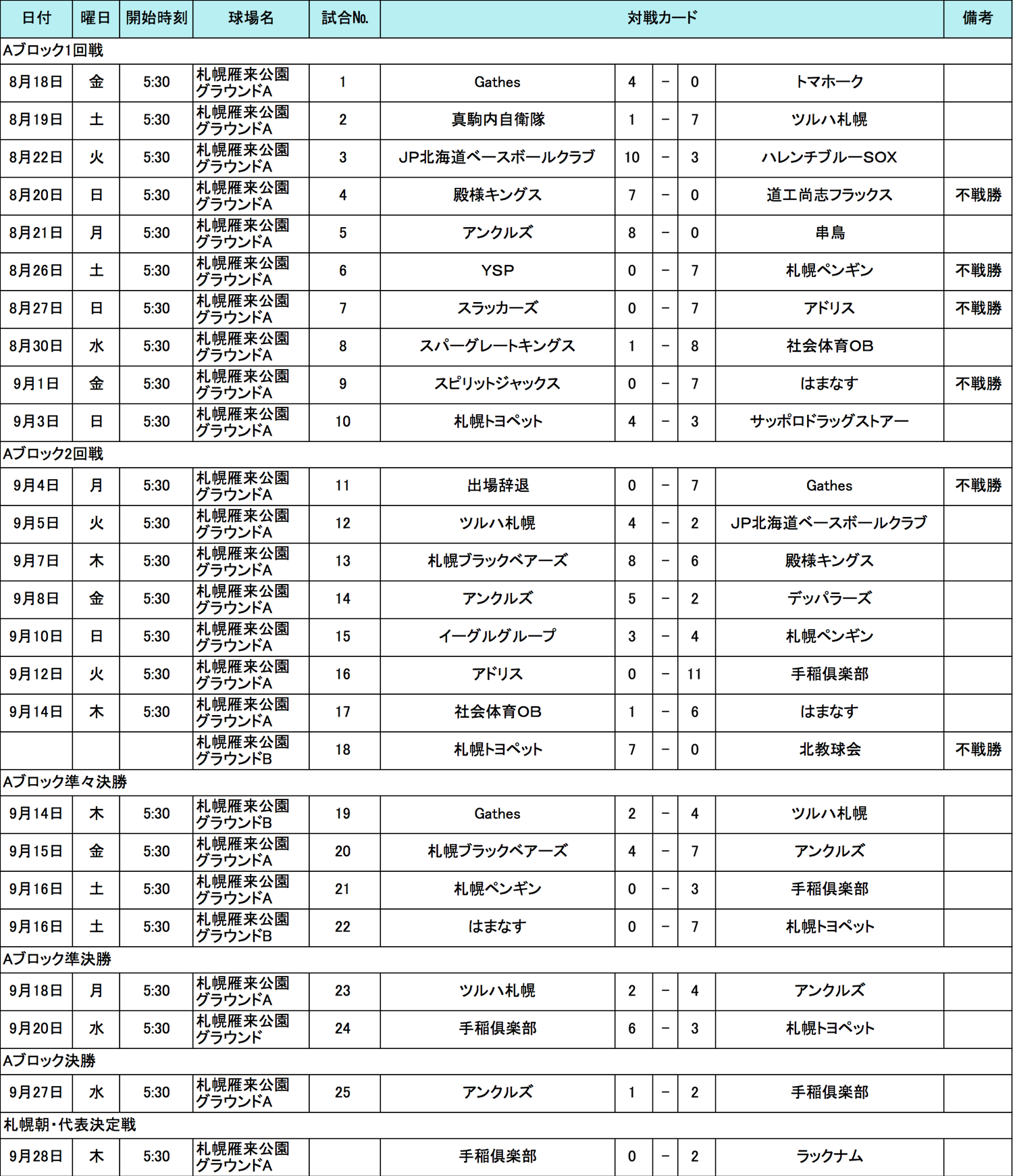 札幌(朝)ブロック・試合結果